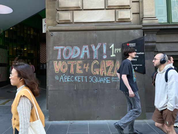 In 2024, the RMIT University Student Union held their largest-ever Student General Meeting. Over 500 students turned out to cast their vote in the Referendum on Palestine. Students overwhelmingly voted for RUSU to condemn Israel's war on Gaza and for the union to stand for a free Palestine.